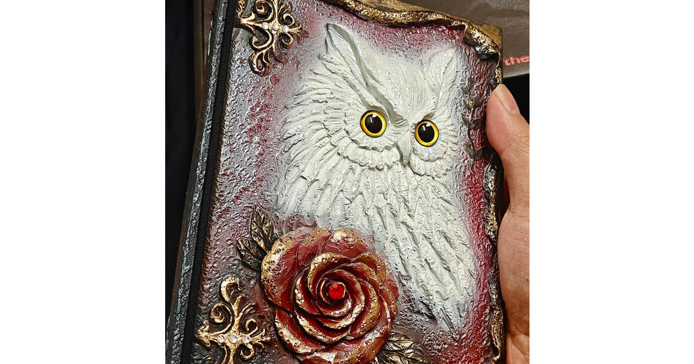 Handmade 3D Owl Resin Journal: Vintage Dark Fantasy Notebook