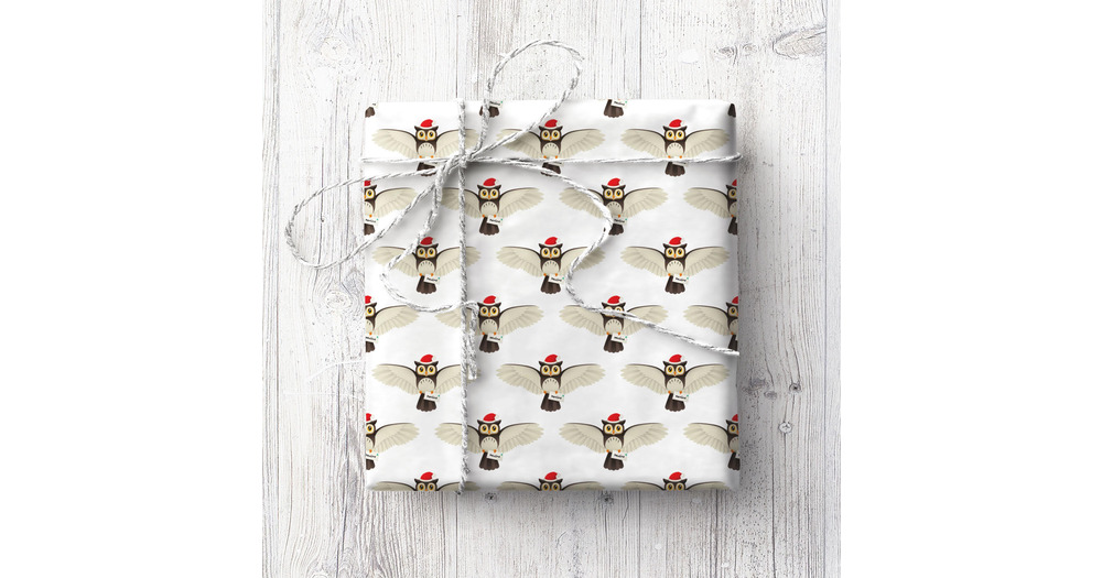 Personalised Christmas Owl Wrapping Paper (Name) min pack of 2 sheets