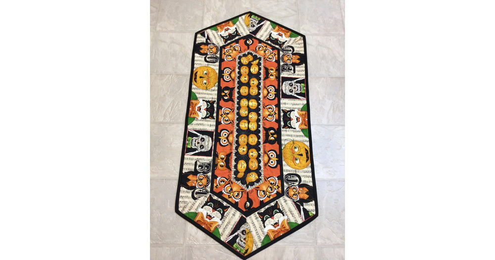 Music Halloween Quilted Table Runner: Cats, Owls, Pumpkins
