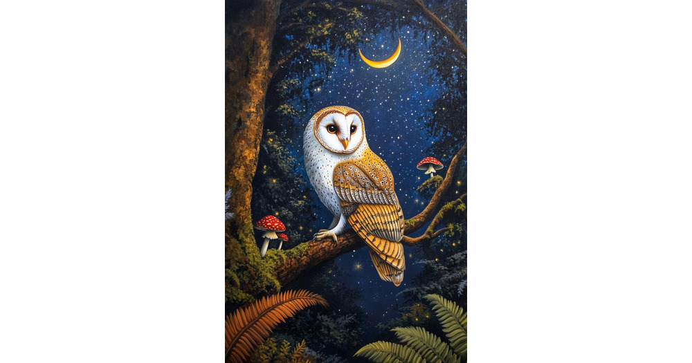 Barn Owl at Night cross stitch pattern. Instant PDF Download. 60k Stitches.