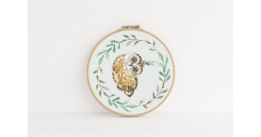 Laurel Owl Cross Stitch, Instant Download PDF, Woodland Animal Pattern, Modern Cross Stitch Pattern,