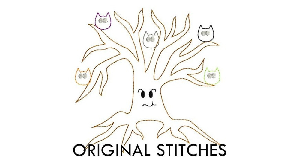 Spooky Owl Tree Halloween Quick Stitch Applique and Embroidery Design File 4x4 5x7 6x10 7x11 8x12