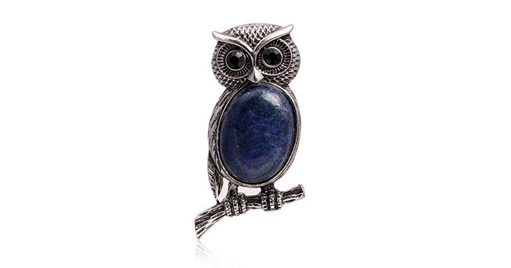 GEM-inside 23X51MM Blue Lapis Lazuli Cleaver Owl Animal Gemstone Leather Pendant Necklace Fashion Je