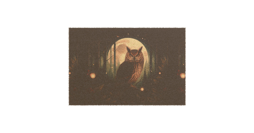 Moonlit Owl Doormat | Rustic Forest Entrance Mat
