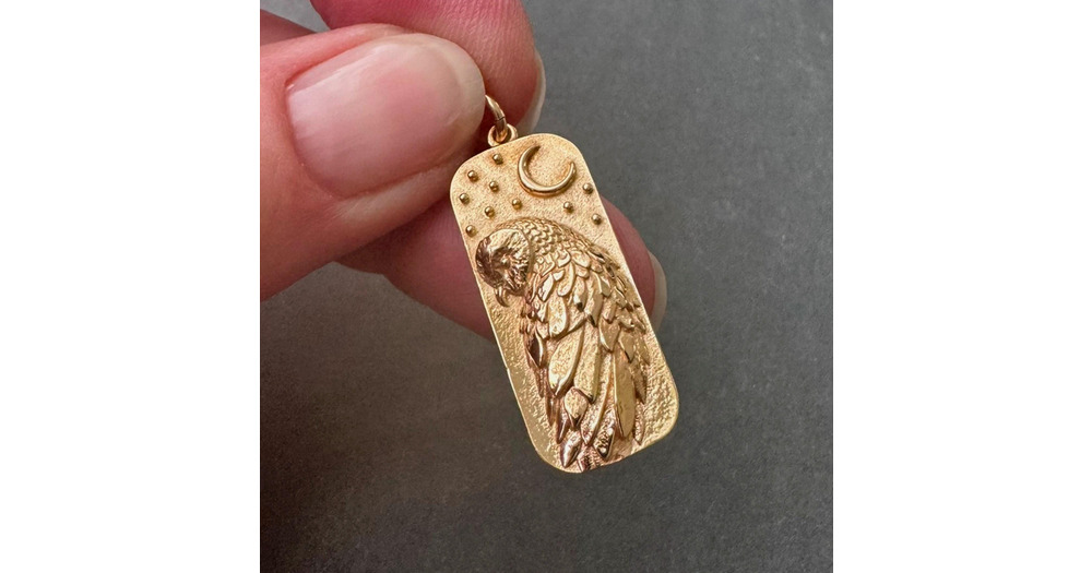 Large Gold Owl and Moon Necklace Pendant, Good Luck Wise Bird Charm