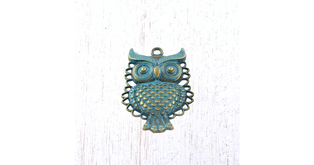 2 antique bronze owl pendants, 45.5x32 mm alloy oversized charms with patina for woodland themed cra