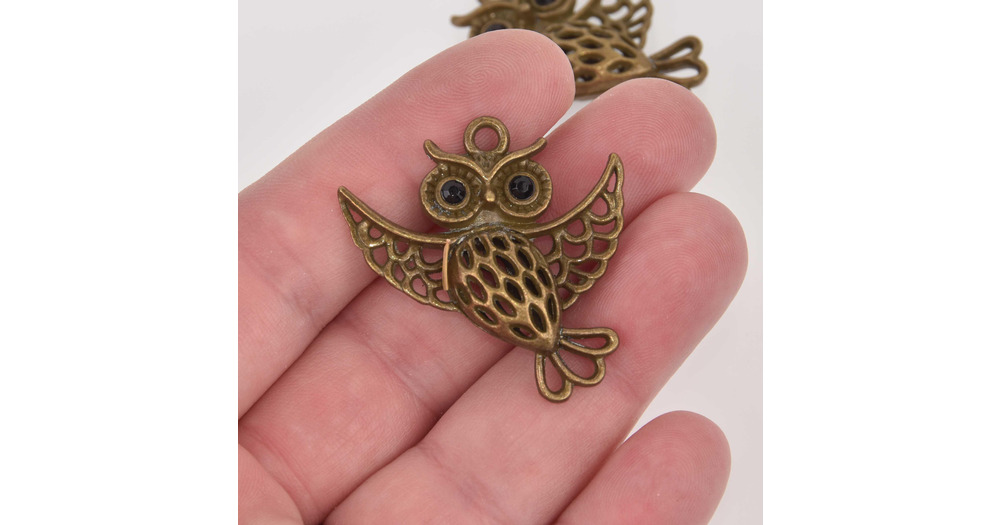 1 Bronze Owl Charm, Filigree 36x38mm, chs8515