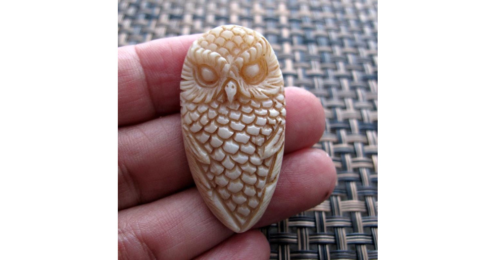 Excellent Detail Hand carved Owl cabochon, buffalo bone carving,Jewelry making Supplies B8743