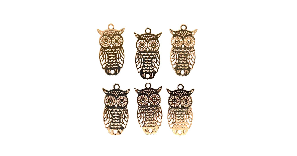 Gold Metal Filigree Owl Charm: Laser Cut Jewelry Link (24mm) Priced per Charm Item #18320
