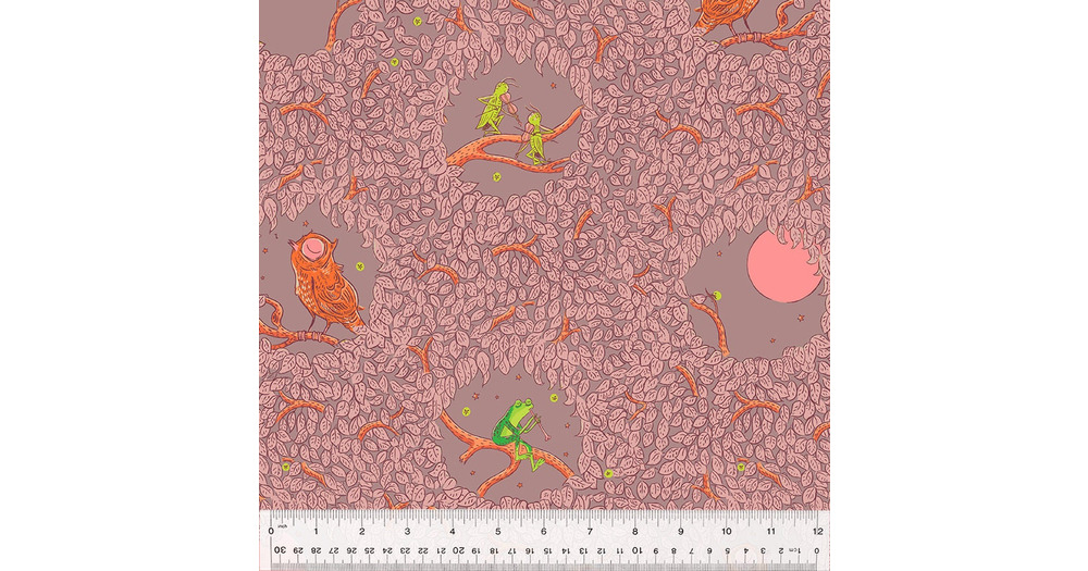 Heather Ross Forestburgh Night Music Mauve 53846-6, Windham Fabric, Owl Frogs Moon, 100% Cotton Fabr