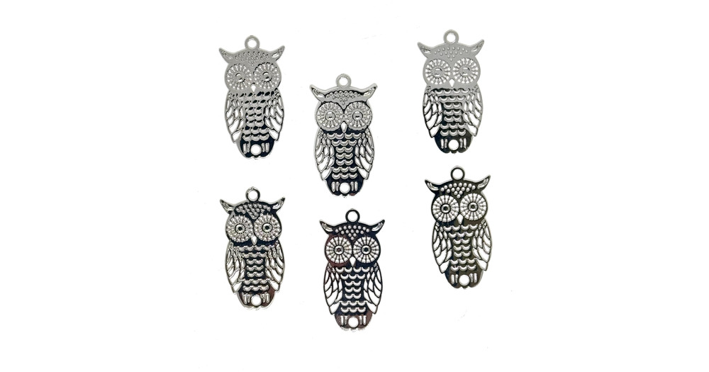 Silver Metal Filigree Owl Charm: Laser Cut Jewelry Making (24mm) Priced per Charm Item #18322