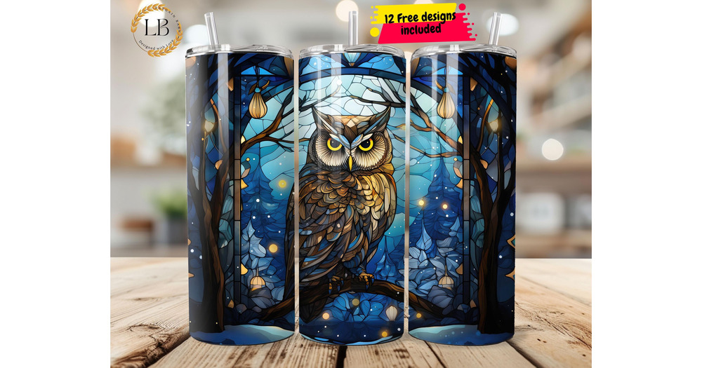 Stained Glass Owl 20oz Skinny Tumbler Sublimation Design Templates Woodland Creature Tumbler Straigh