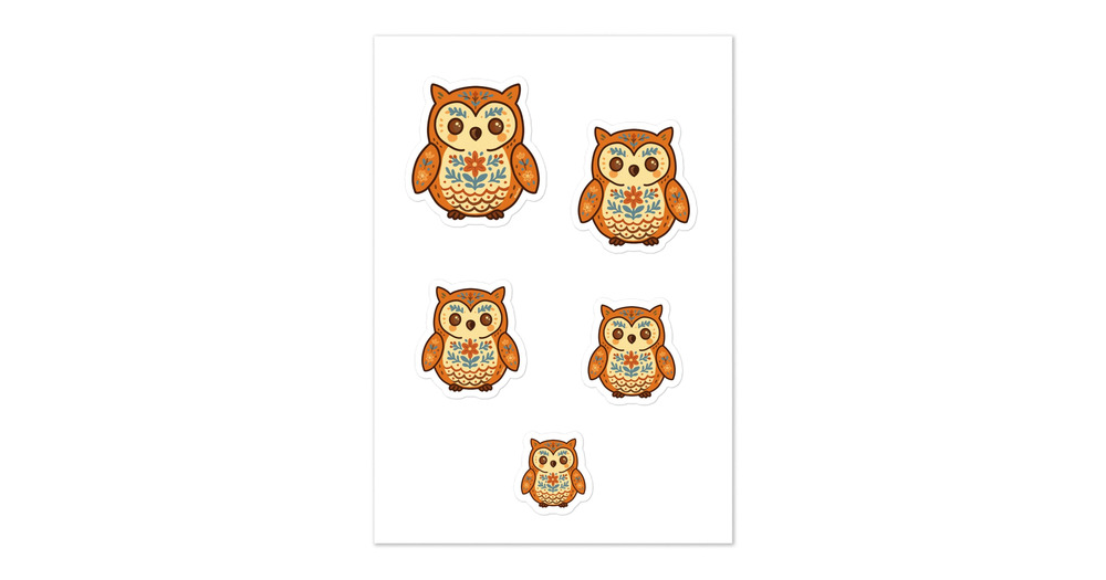 Folk Owl Sticker Sheet: Glossy Hand-Drawn Autumn Stickers