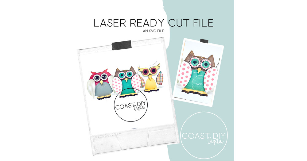 Trio of Owls SVG Digital File | Glowforge Ready | Laser