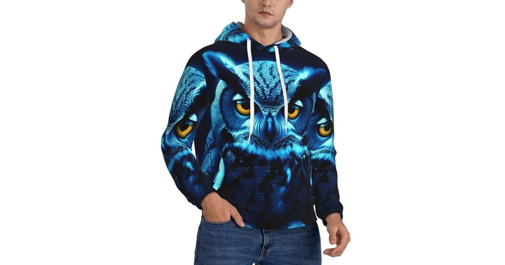 JHLMN Men's Pullover Hoodie Fleece Hooded Blue Owl Sweatshirts with Pocket Casual Long Sleeve S