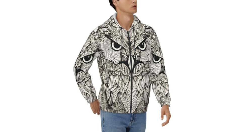 DRTGEDS Owls Birds Mens Hoodies Full Zip Up Sweatshirt Long Sleeve Fleece Jacket Casual Hooded For M