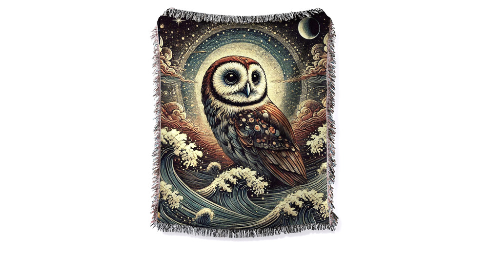 Owl Woven Cotton Blanket Scandinavian Art Throw Whimsical Mystical Wise Owl Tapestry Moon Woodland B
