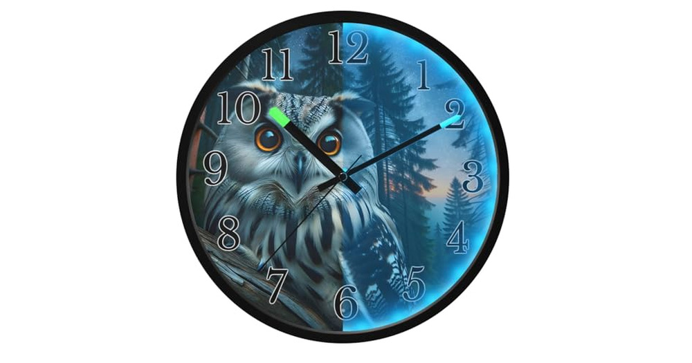 ALAZA Owl Forest Animal Wall Clocks Glow in Dark Battery Operated Silent Wall Clock 12 Inch Non Tick