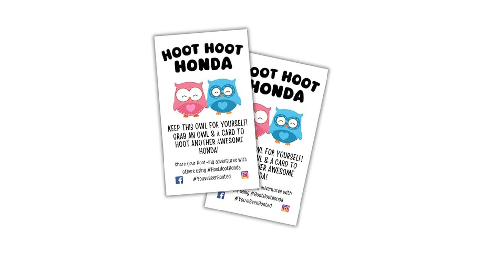 Hoot Hoot Honda Duck Duck Jep for Honda Cards Tags | 50pk 2x3.5” Owl Figurine SUV Car Game You