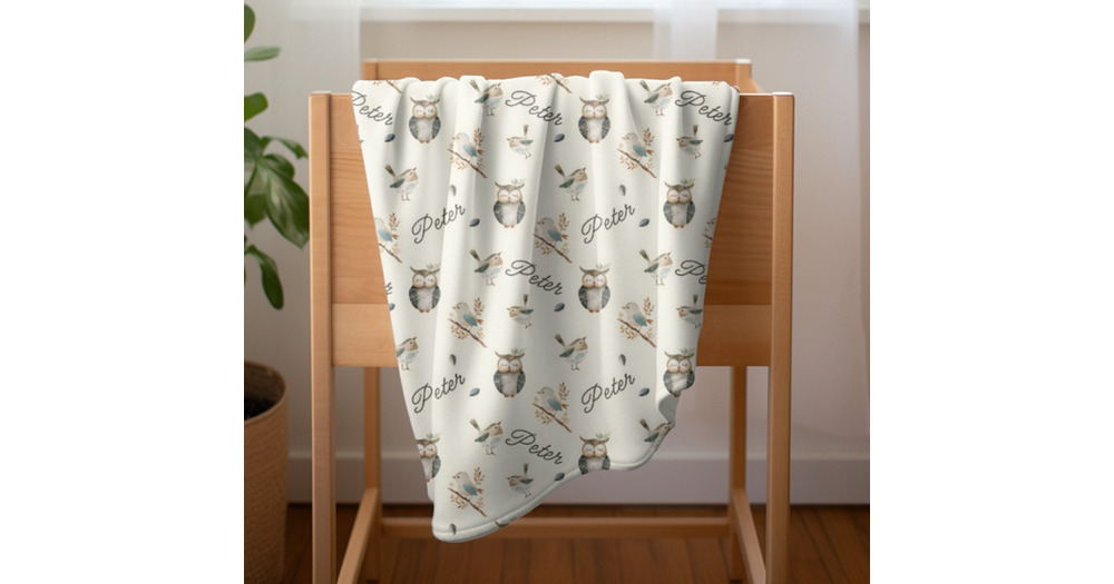 Personalized Name Nursery Owl Blanket, Personalized Velveteen Blanket, Personalized Kid's Blanke