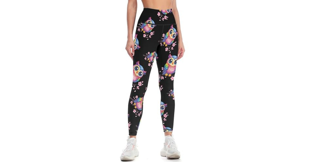 Cute Owl Floral Leggings for Women High Waist Tummy Control Workout Yoga Pants for Running Athletic
