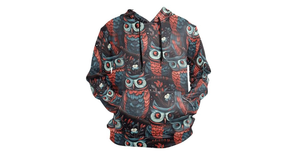 ALAZA Blue Red Owl Men’s Hoodie Sweatshirt Casual Long Sleeves Soft Pullover with Pocket