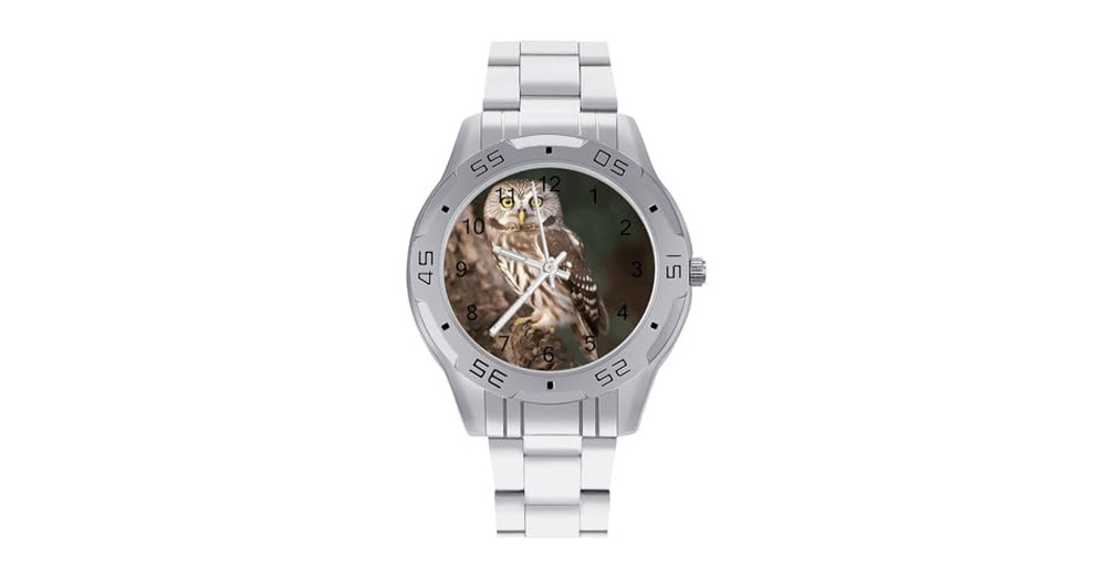 RLDOBOFE Men’s Business Steel Band Watch, Stainless Steel Quartz Wildlife Animal Owl Printed W