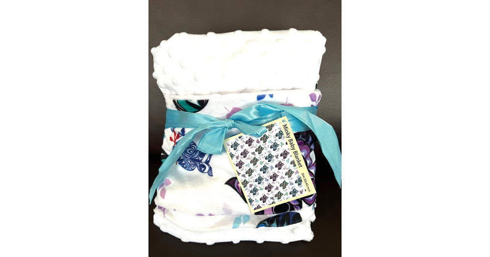 Coast Salish First Nation Minky 'Owl Chick' Baby Shower Gift Blanket Pacific North West Nati