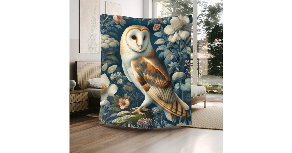 Barn Owl Sherpa Fleece Blanket - William Morris Inspired Floral Owl Blanket,  Dark Cottagecore Botan