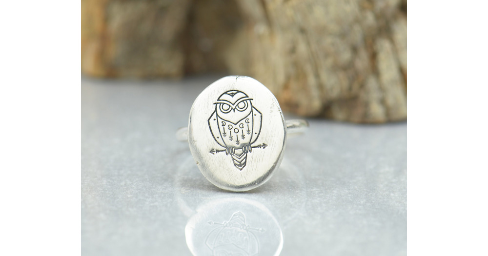 Sterling silver Celestial Owl ring.Moon phases Ring.Spiritual ring Mystery magic jewelry.Artisan han