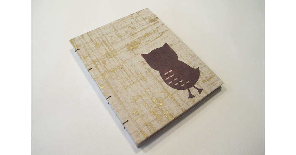 Owl Handmade Notebook Journal: Brown and Gold Hardbound Coptic Small Book