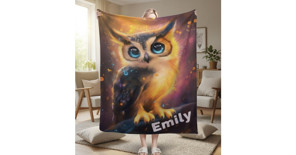 Personalized Cosmic Owl Spirit Animal Blanket, Mystical Ethereal Custom Name, Whimsical New Age Tote