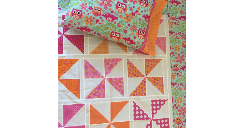 SPRING OWL PINWHEEL Twin Quilt - Quilt Top - pillowcase - unfinished - 61 x 86.5 - handmade quilt to