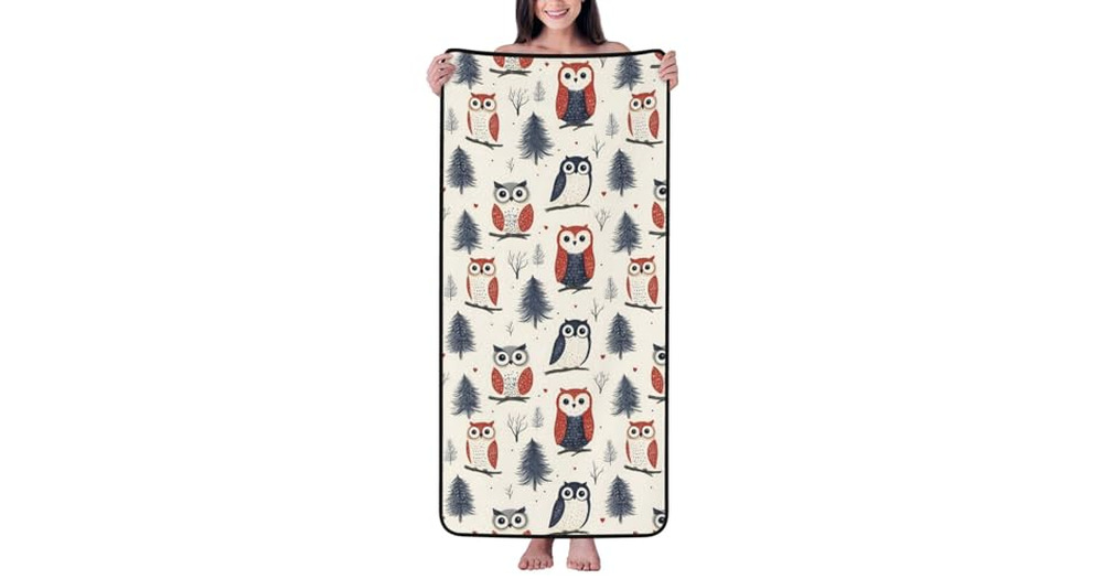 GVYGVY Cotton Bath Towels for Bathroom - Owl in The Woods Print Microfiber Towels for Body Bath Shee
