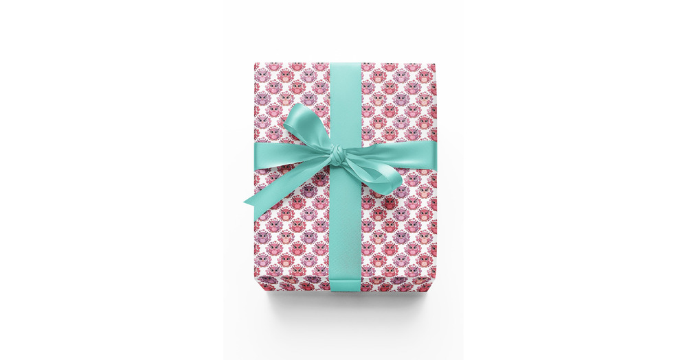 Pink Heart Owls Wrapping Paper | Valentine Gift Wrap Roll