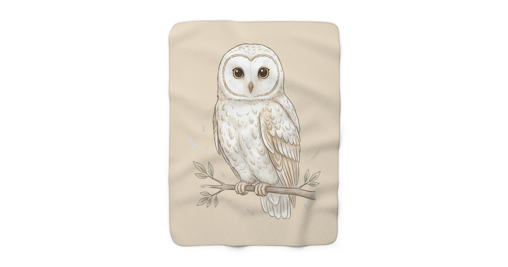 Barn Owl Plush Blanket Sherpa Fleece Blanket, Vintage White Owl Cozy Throw, Outside sitting Couch, P