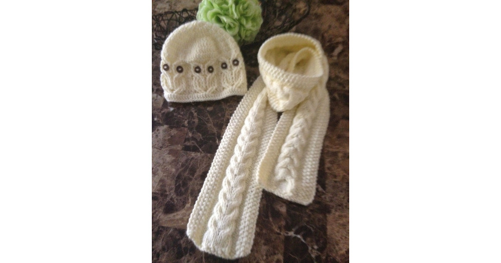 Crochet Owl Hat and Cable Knit Scarf Set, Ivory Baby Girls