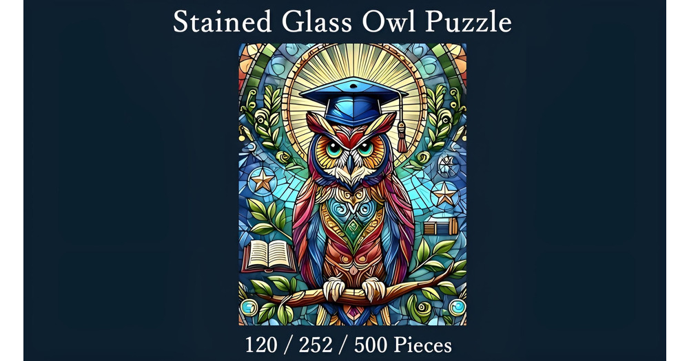 Stained Glass Owl Jigsaw Puzzle, Wise Owl Art Puzzle, Colorful Owl Illustration, Family Puzzle Gift