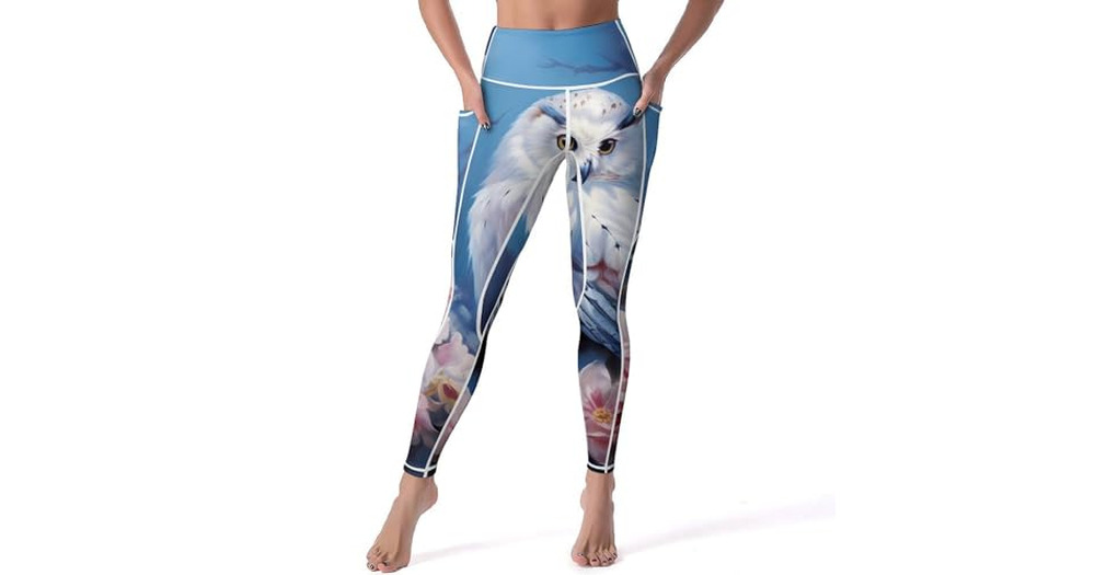 Owl Leggings for Women High Waisted Yoga Pants Workout Athletic Running Pants S