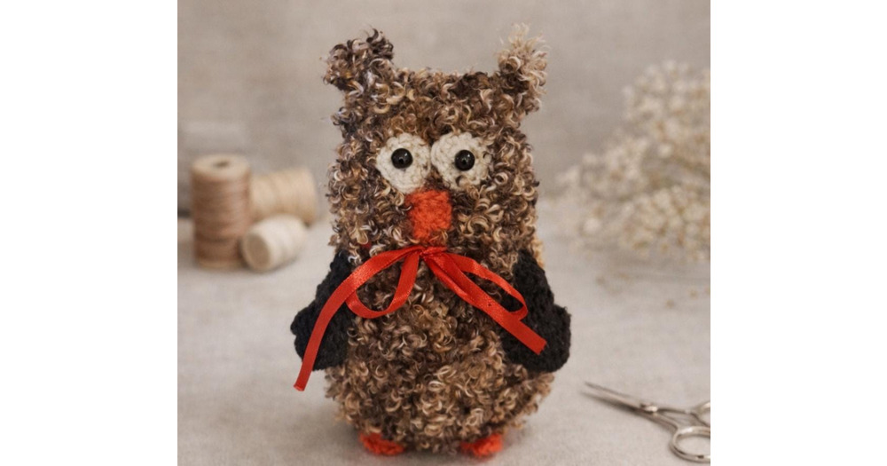 Handmade Boucle Owl Plush - 8 inch Forest Bird Toy
