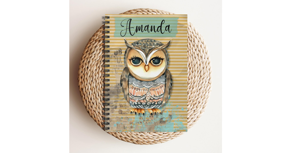 Boho Owl Notebook, Custom Personalized Journal, Gift for Writers, Back to School, Student And Teache