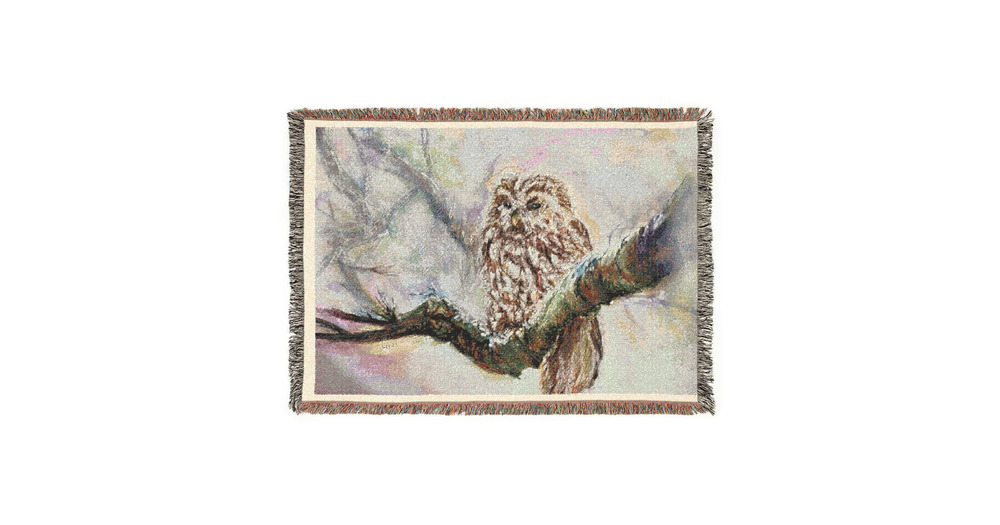 Barn Owl Illustration Woven Blanket | Nature Bird Throw