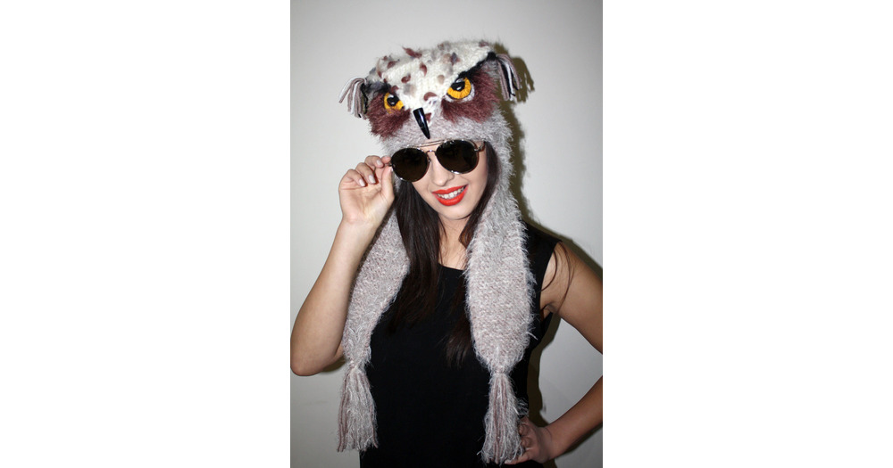 Beige Owl Hat – Hand Knitted Animal Beanie for Kids – Winter Baby Hat – Toddler Ph