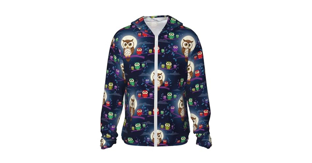 Supdreamc Men's Breathable UPF 50+ Sun Hoodie Owl, Lightweight Full Zip Long Sleeve Jacket For