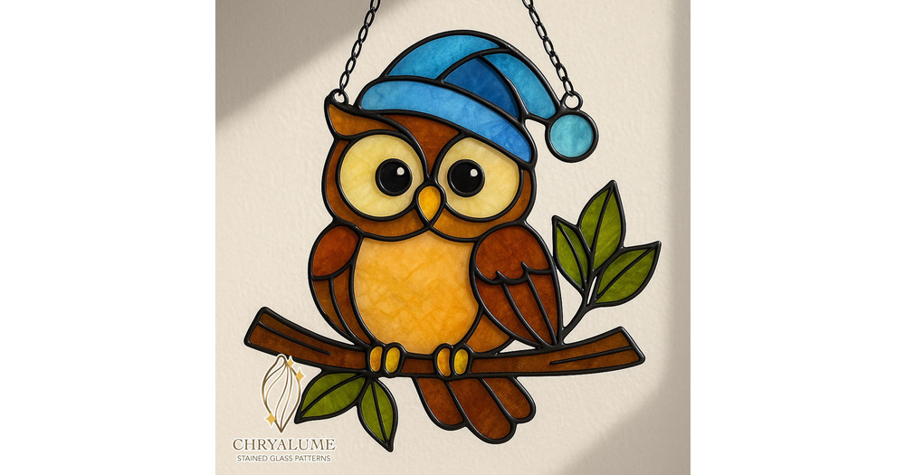 Cute Sleeping Owl Stained Glass Pattern PDF, Digital Download Pattern Stained Glass, DIY Suncatcher