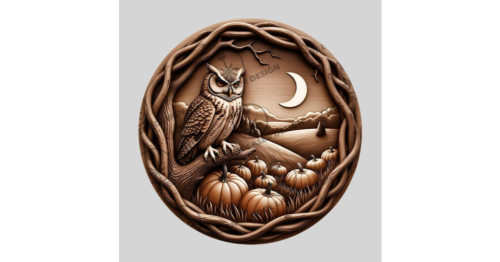 3D Illusion Engraving Laser File, Halloween Owl, Owls Midnight Watch Digital Engraving for Laser