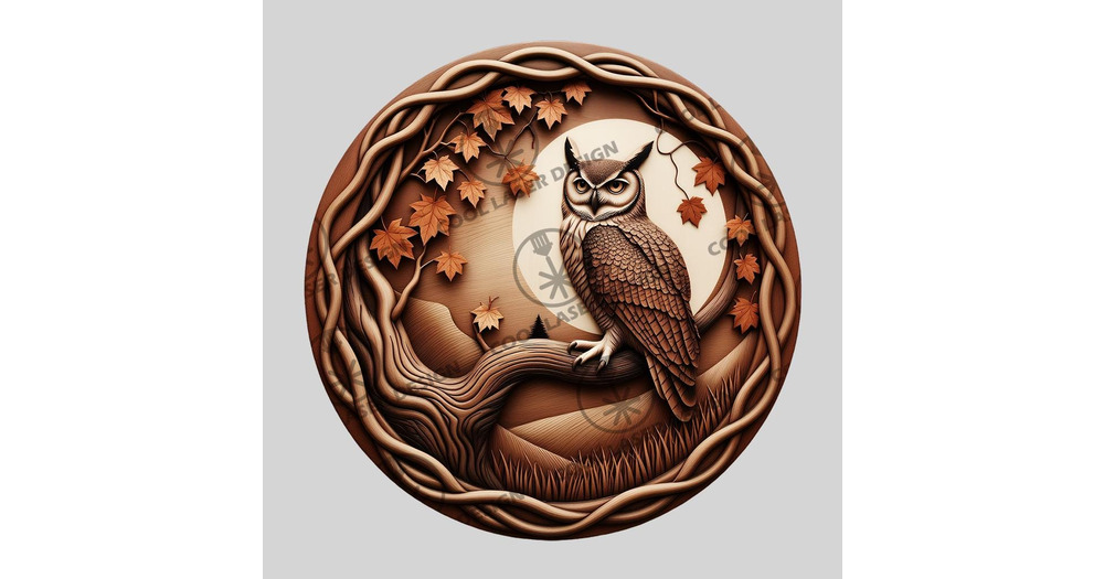 Halloween 3D Laser Engraving File, Wise Owl On Branch Illusion Laser Design