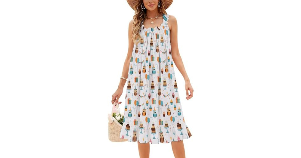 GemGam Womens Summer Sleeveless Dresses Owl Birthday Cake Balloons Ruffles Collar Midi Sundresses fo