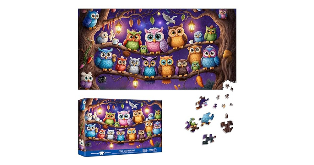 Reofrey Puzzles for Adults 1000 Pieces - Nocturnal Gathering OWL, Special Shape Jigsaw Puzzles, Chal