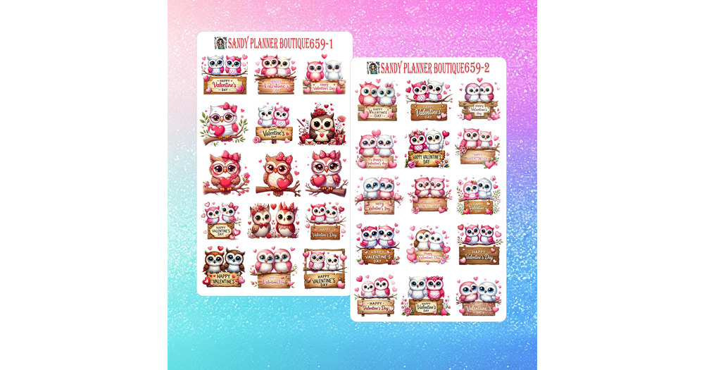 Owls In Love Valentine Day Planner Stickers | Waterproof Decorative Stickers 659-1 659-2